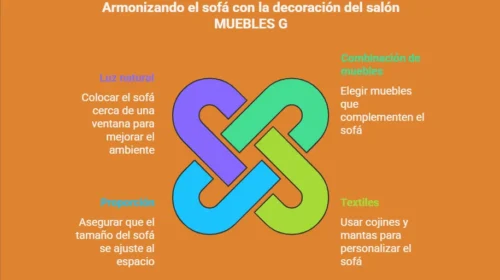 • Combinar con el resto de muebles: elige un sofá que dialogue con mesas, estanterías y muebles auxiliares en materiales y estilos.